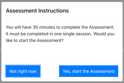 - If assigned a timed Assessment, the learner must complete the Assessment in one session.