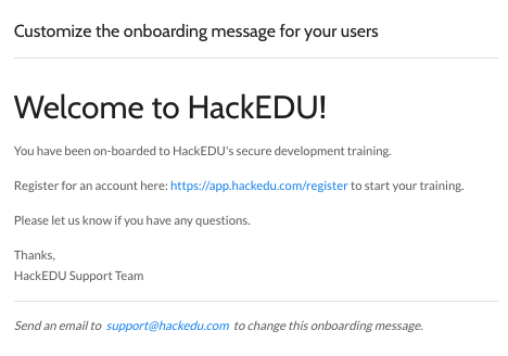 If you would like to edit the default message, please reach out to use via our live chat or send a request to support@securityjourney.com.