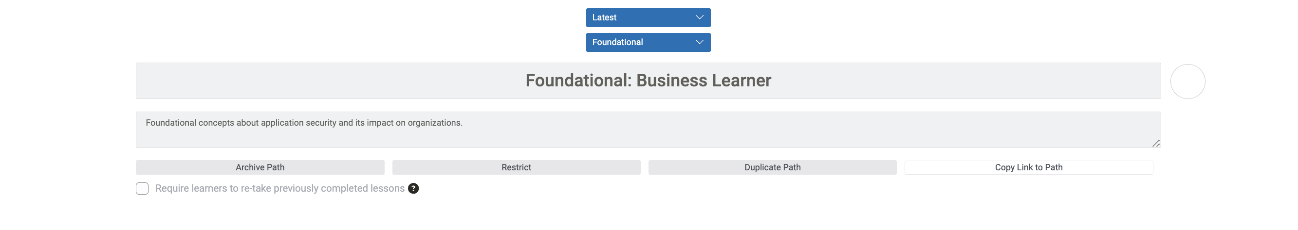 All of our Recommended training paths were created by our Application Security Engineers and can be used as is. However, you can also duplicate and customize the paths as needed to meet your organization's unique learning goals or compliance needs.