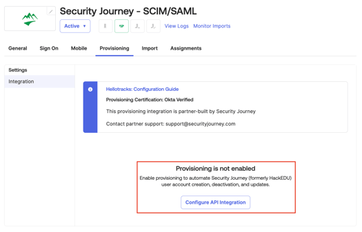 This article describes how to set up SCIM within the Security Journey Okta App.