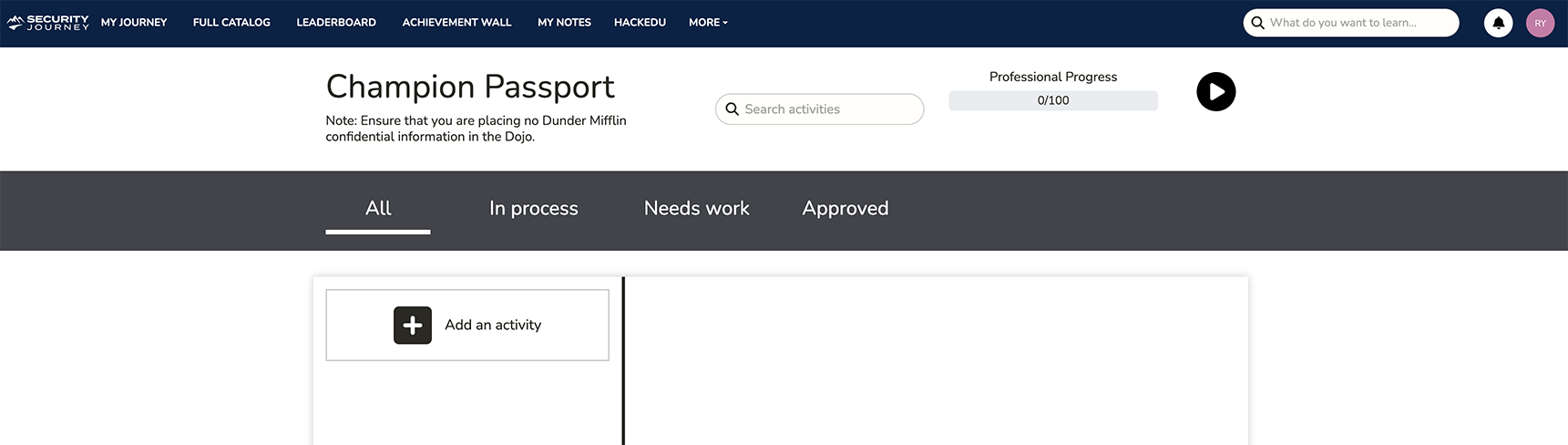To begin working on your Champion Passport, you will need to complete a foundational, intermediate and advanced paths before getting access to Champion Passport.