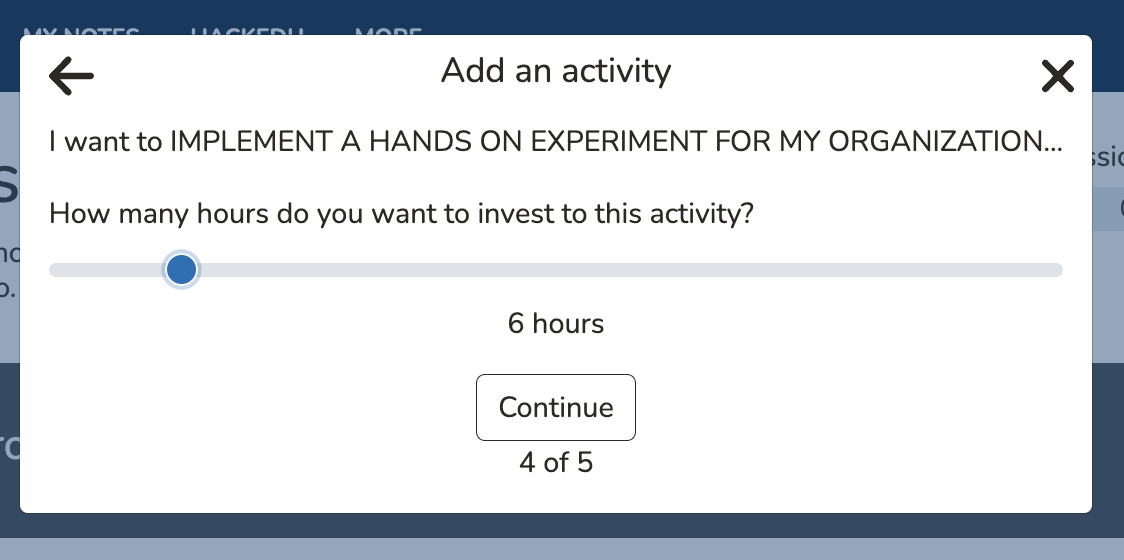 After choosing your audience, you will be asked to determine the amount of hours you will dedicate to this activity.
