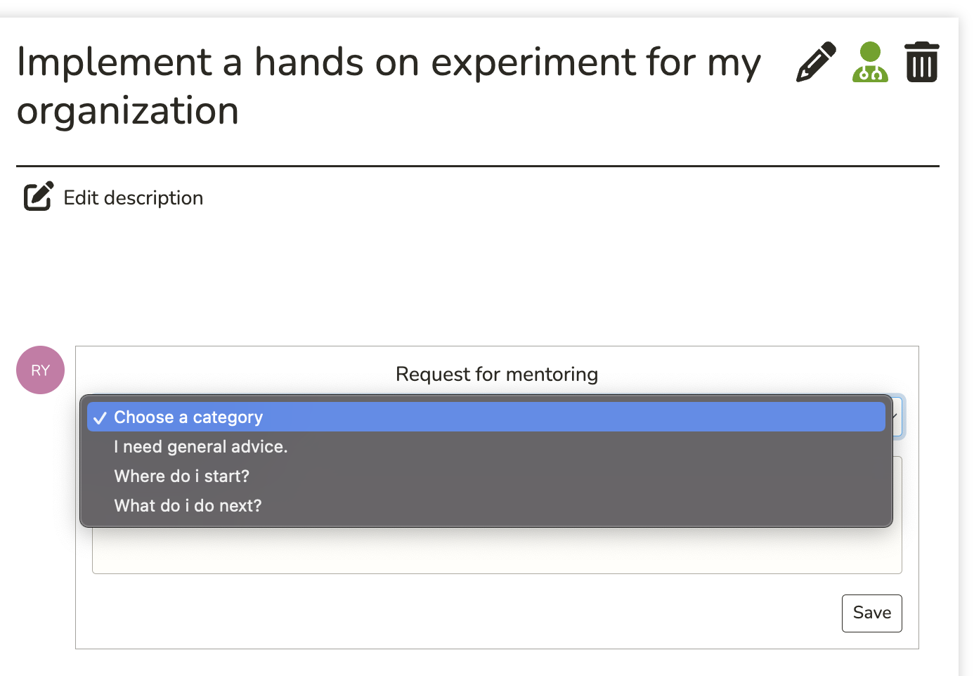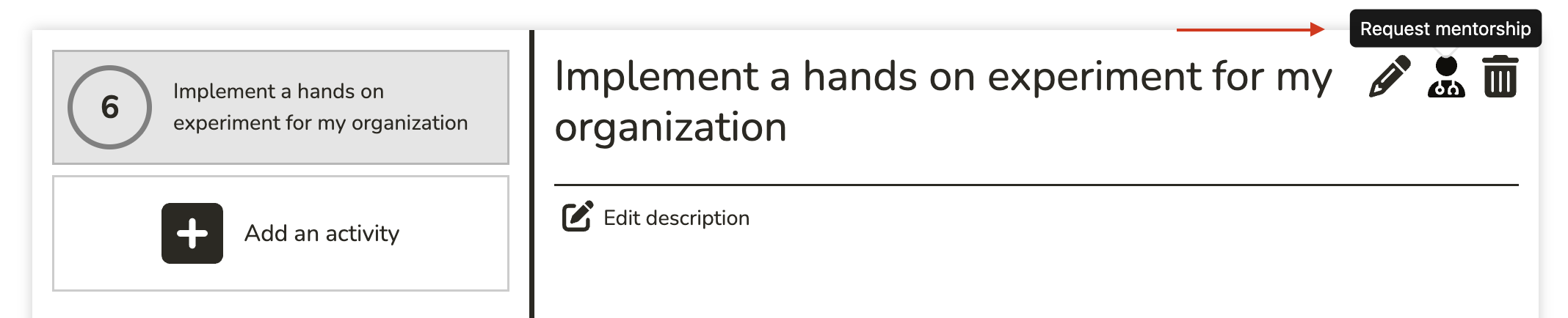 If you want or need additional guidance or mentorship on how to build out a plan for your activities you can click the "Request Mentorship" button within your activity.