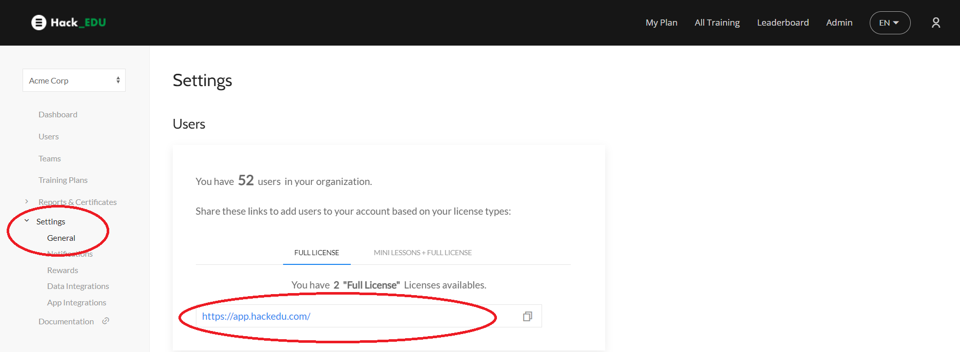 Alternatively, we have a link you can share if you would rather onboard your Users via email/password. You can find the invite link for email/password onboarding by navigating to Admin > Settings > General and locating the link under the Users settings. You can also use this link if you a user did not receive an onboarding email!