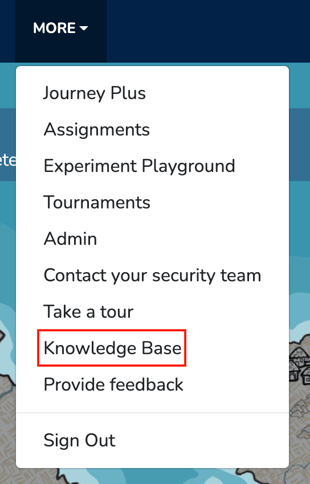 You can finally access our Security Journey Knowledge Base from the Platform! We've added a link to our documentation in the More ^ dropdown:​
