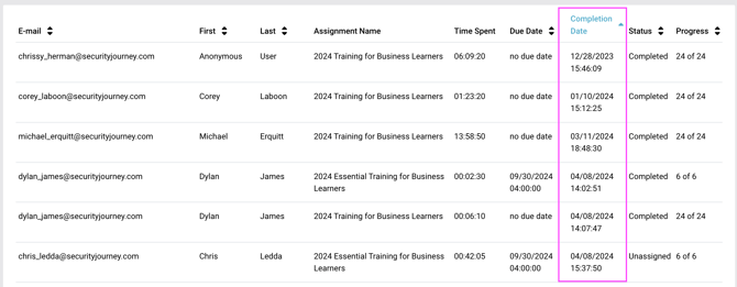 Added learner completion date to give you clearer insight into training timelines and progress tracking.